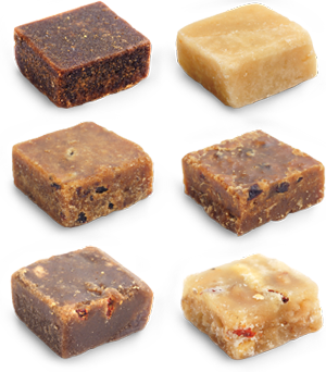 由純黑糖製作,搭配天然食材,創造出不同口味,單顆單包,美味不沾手。